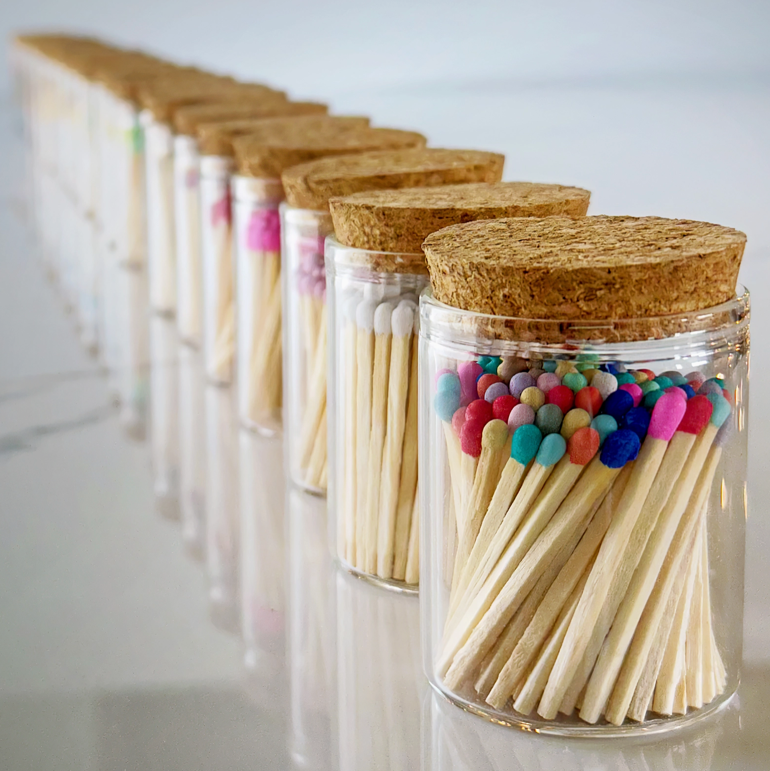2" Colourful Wooden Matches in Cork Top Glass Jar