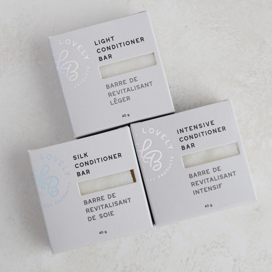 We took the standard bottle of conditioner and took out the plastic bottle, and added in what we loved: Silk Protein, Pro-Vitamin B5 and hydrating conditioners! The bars are also pH-balanced to help your hair look and feel its healthiest!