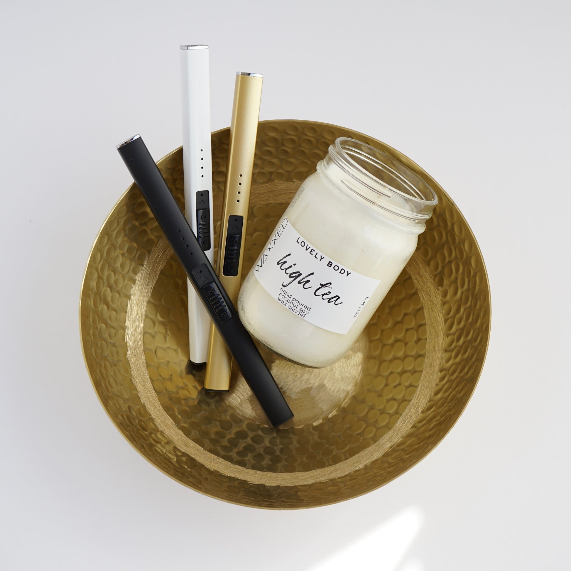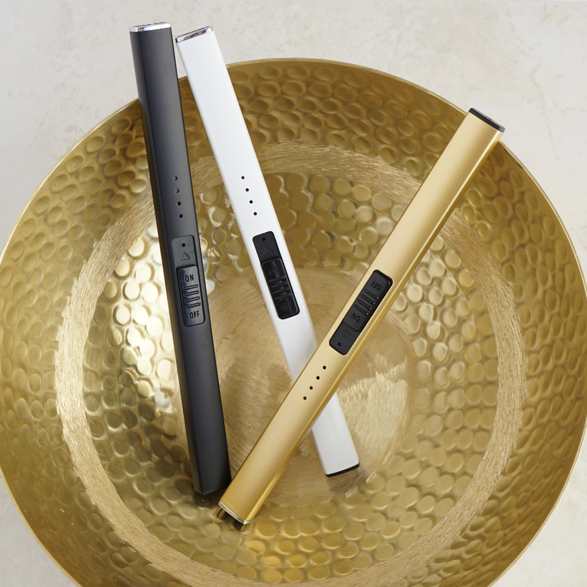 These slim-line, eco-friendly lighters are electronic and can be recharged and reused over and over again. They fit perfectly in your hand, and are long enough to reach your wicks even when they're down to the last little bit.