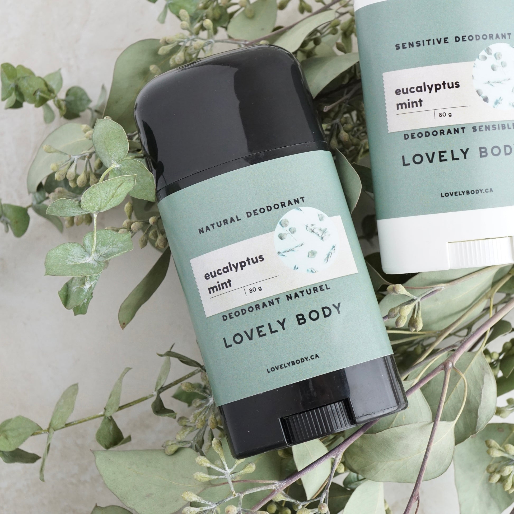 There are two varieties available of our deodorants: Natural Deodorant (with Baking Soda) and our Sensitive Deodorant (also natural, but without Baking Soda, and great for those with delicate or sensitive skin).