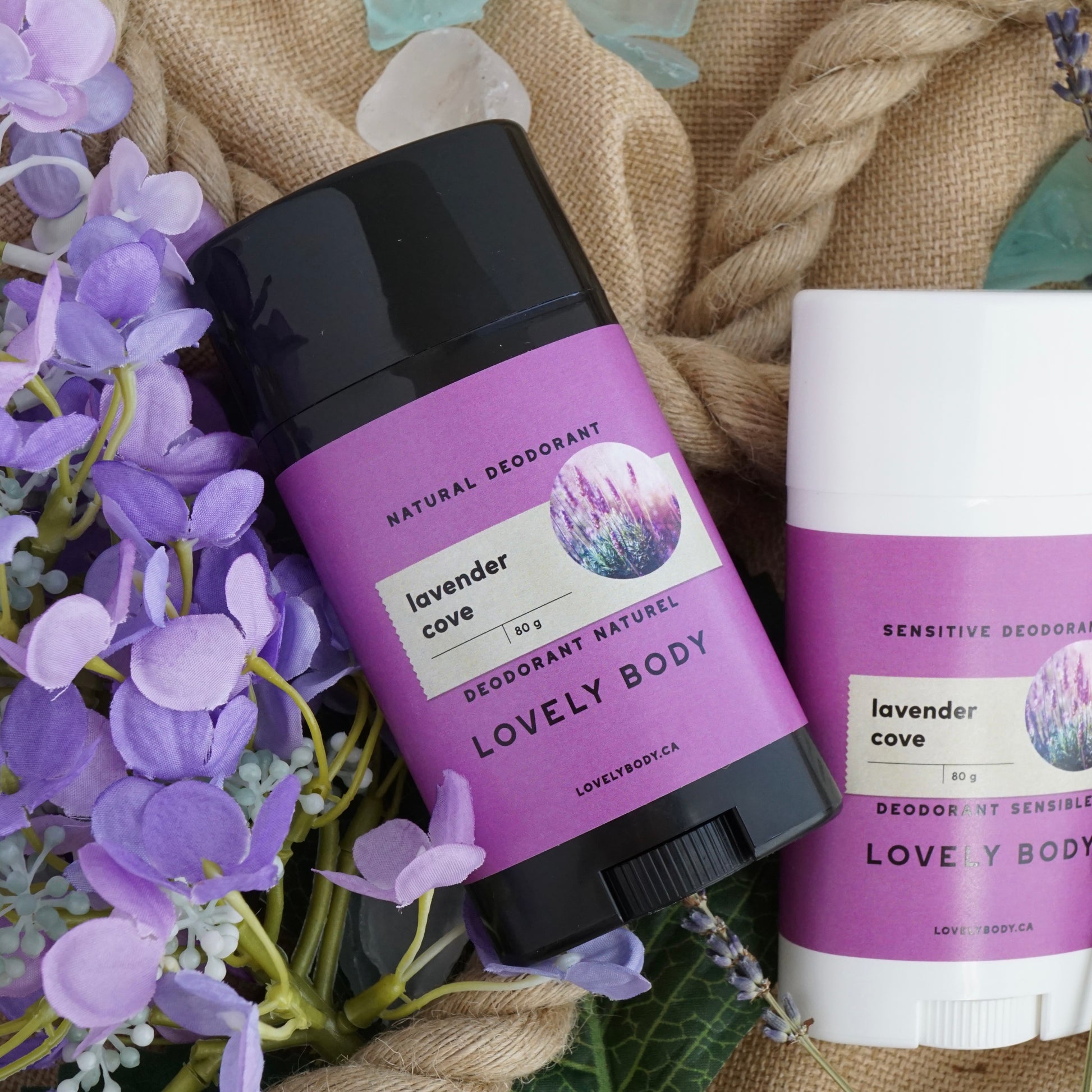 There are two varieties available of our deodorants: Natural Deodorant (with Baking Soda) and our Sensitive Deodorant (also natural, but without Baking Soda, and great for those with delicate or sensitive skin).
