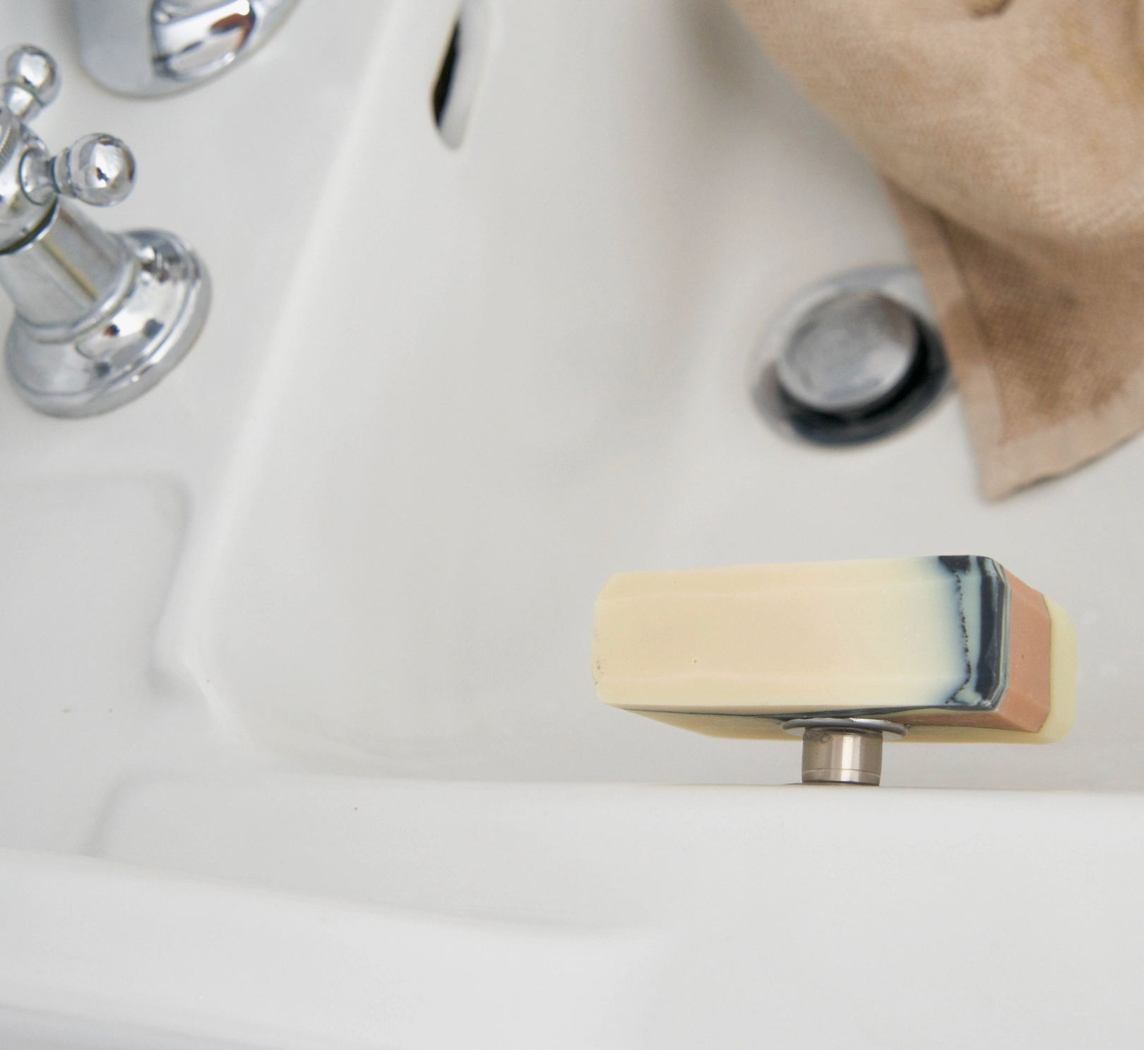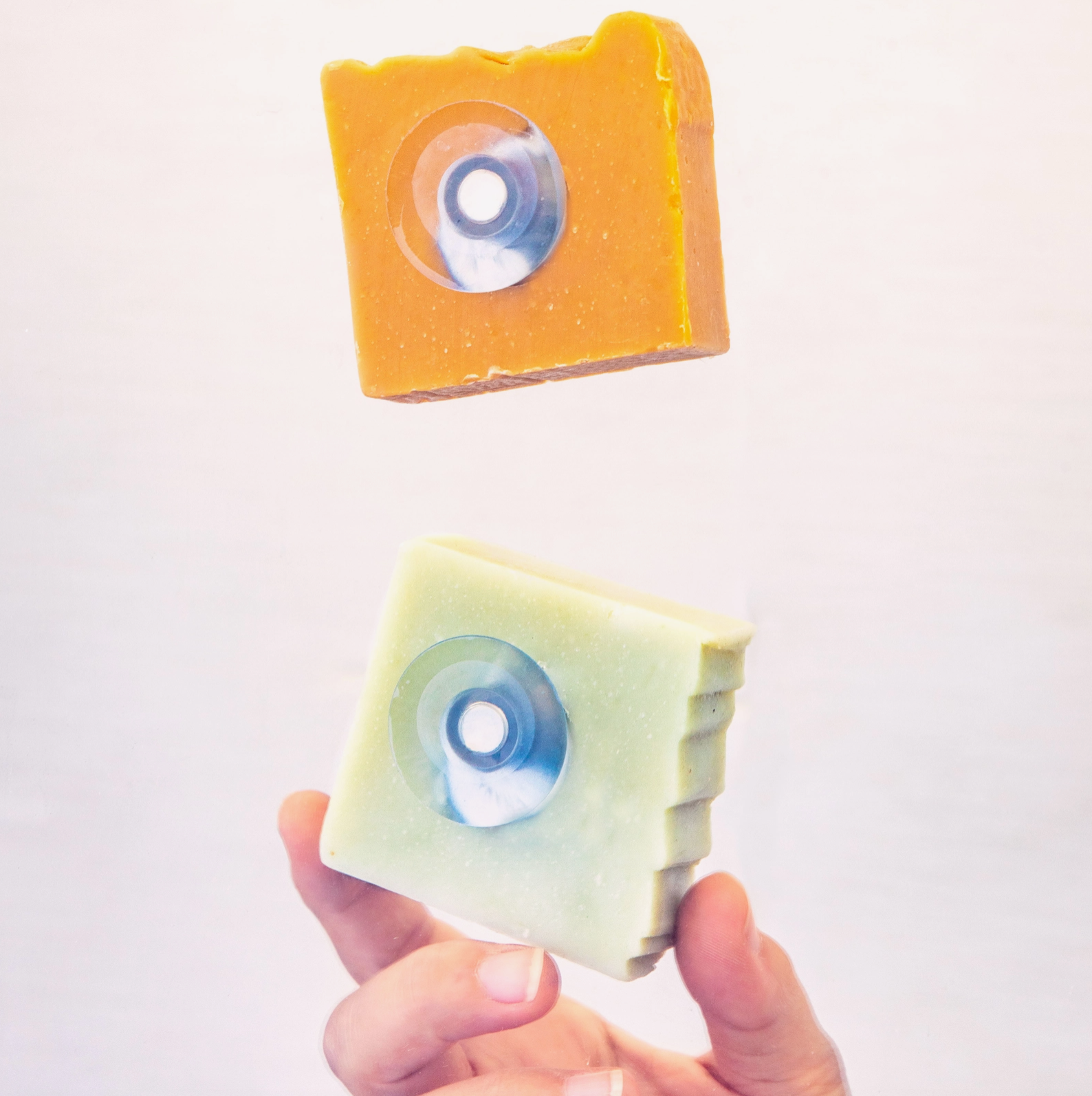 To use: Push magnetic capsule into your bar of soap, stick magnetic cup to your clean, dry surface of choice, then put them together to keep your bar of soap within reach and out of puddles!