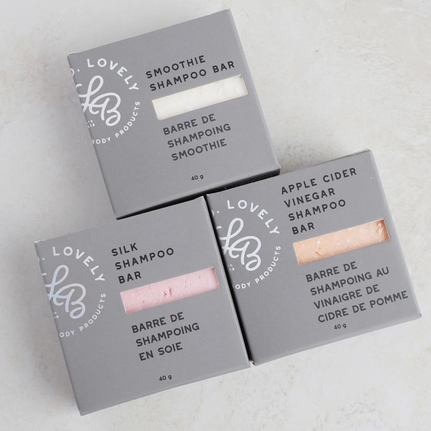 Smoothie Shampoo Bars: Our classic Silk Shampoo Bars with added hydrating ingredients and coconut, to help hydrate and add shine.