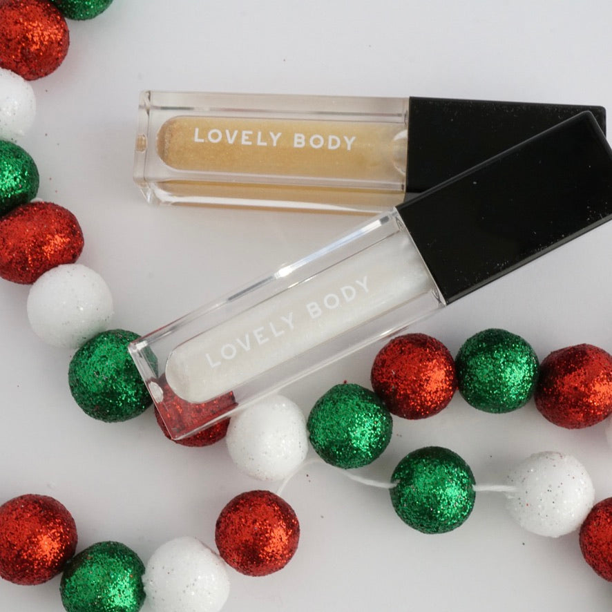 Clear gloss with a bit of shimmery winter oomph! Glints of white shimmer and notes of ambrosia (think marshmallow, coconut and a touch of orange), will have you feeling the holidays all over.