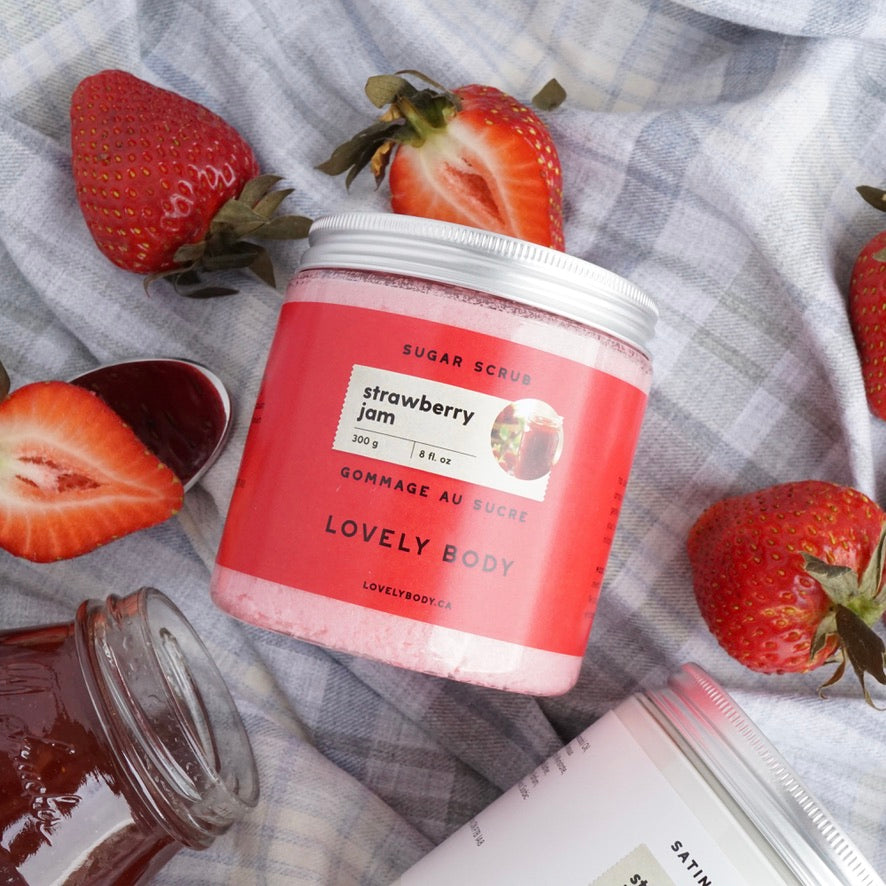 Strawberry Jam Sugar Scrub - NEW Scent - Jammy Strawberry, Warm Vanilla