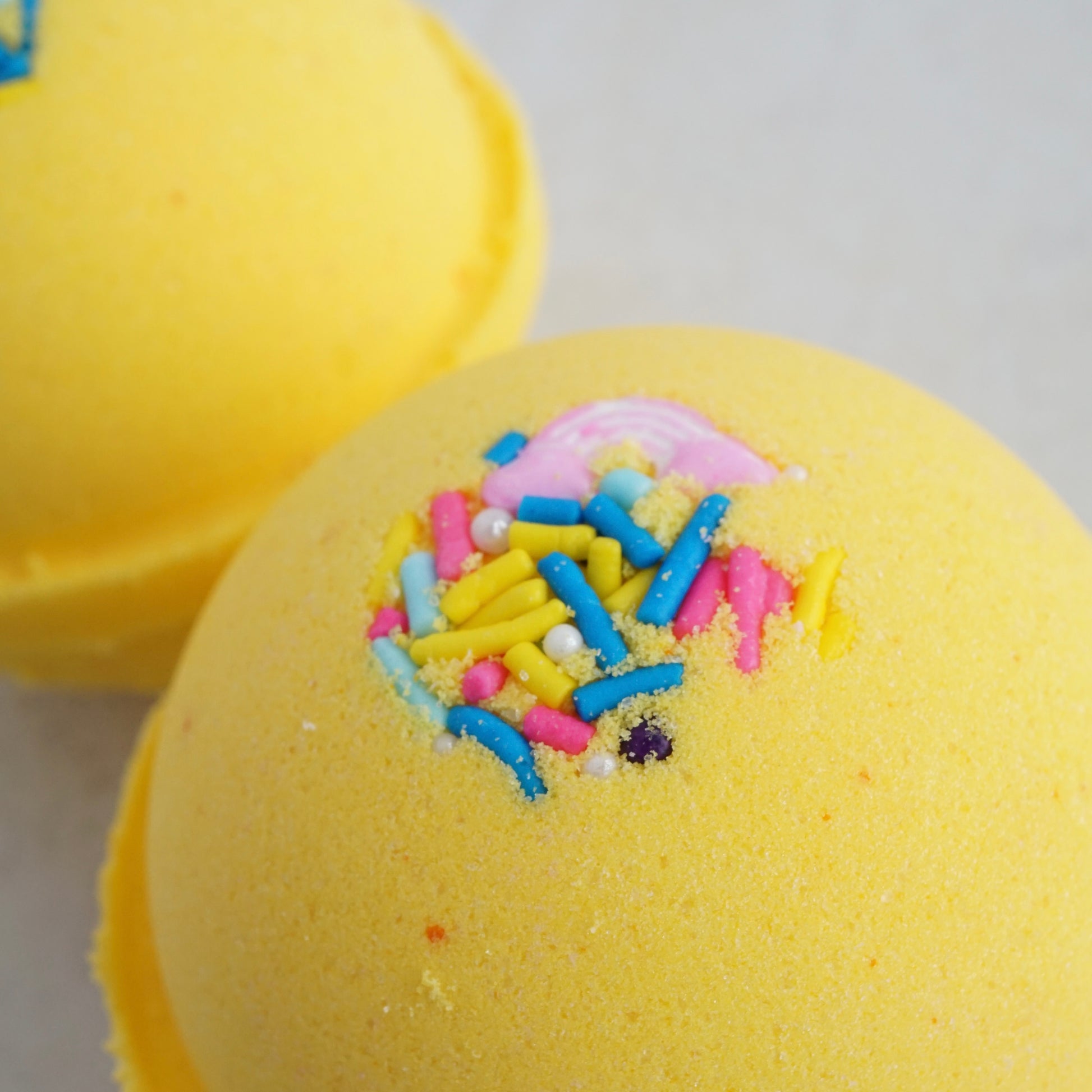 Ingredients: Sodium Bicarbonate, Citric Acid, Buttermilk Powder, Sodium Lauryl Sulfoacetate, Potassium Bitartrate, Sunflower Seed Oil, Polysorbate 80, Parfum, Mica, Titanium Dioxide, Iron Oxide, Sugar Nonpareils, CI 19140.