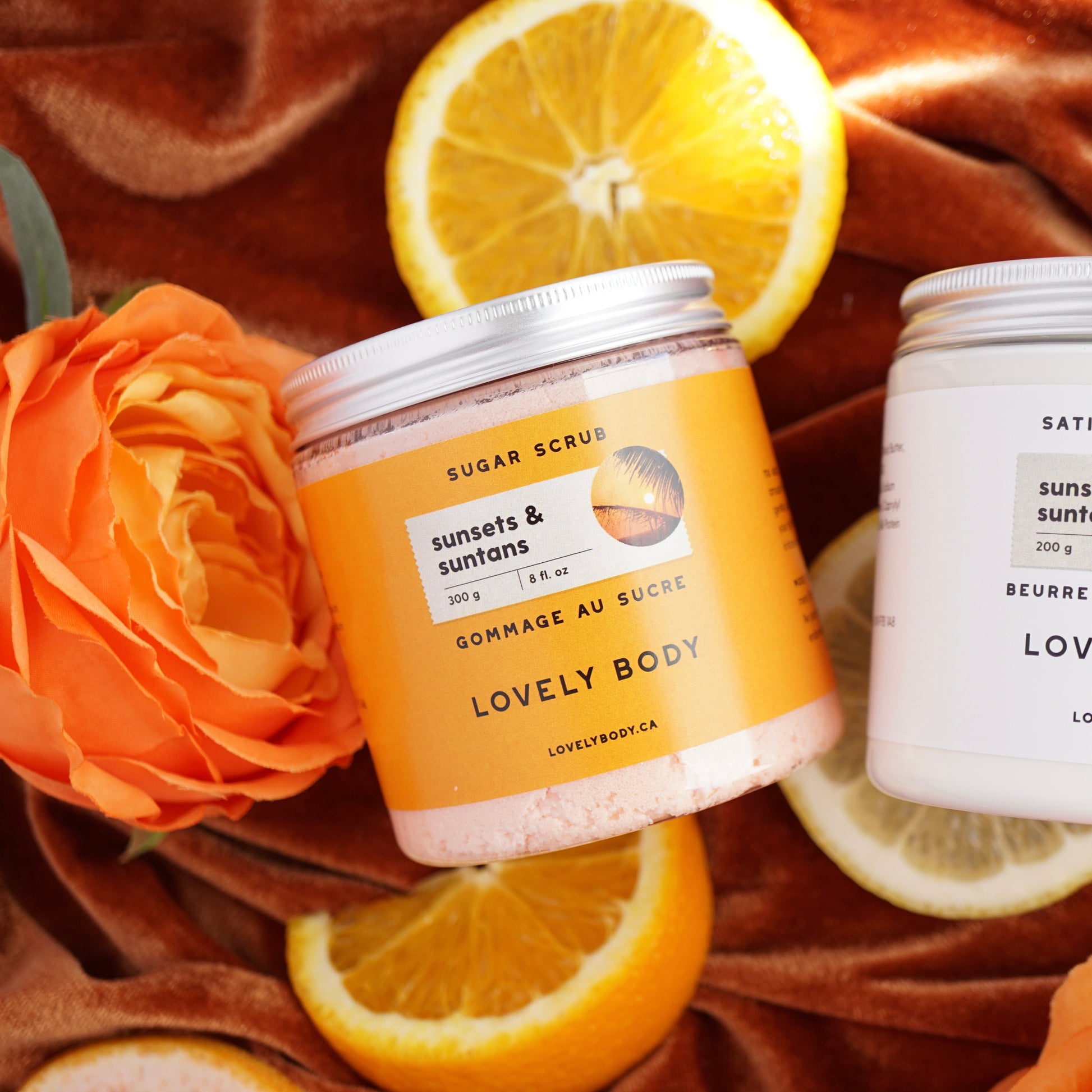 Bright, tangy and fruity. Sunsets and Suntans smells like the bright colour of a summer sunset, as you sit and bask in a glorious day spent warm in the sun. Notes of tangy orange peel essential oil and mandarin are blended and smoothed with a touch of vanilla, and a subtle pop of black pepper.
