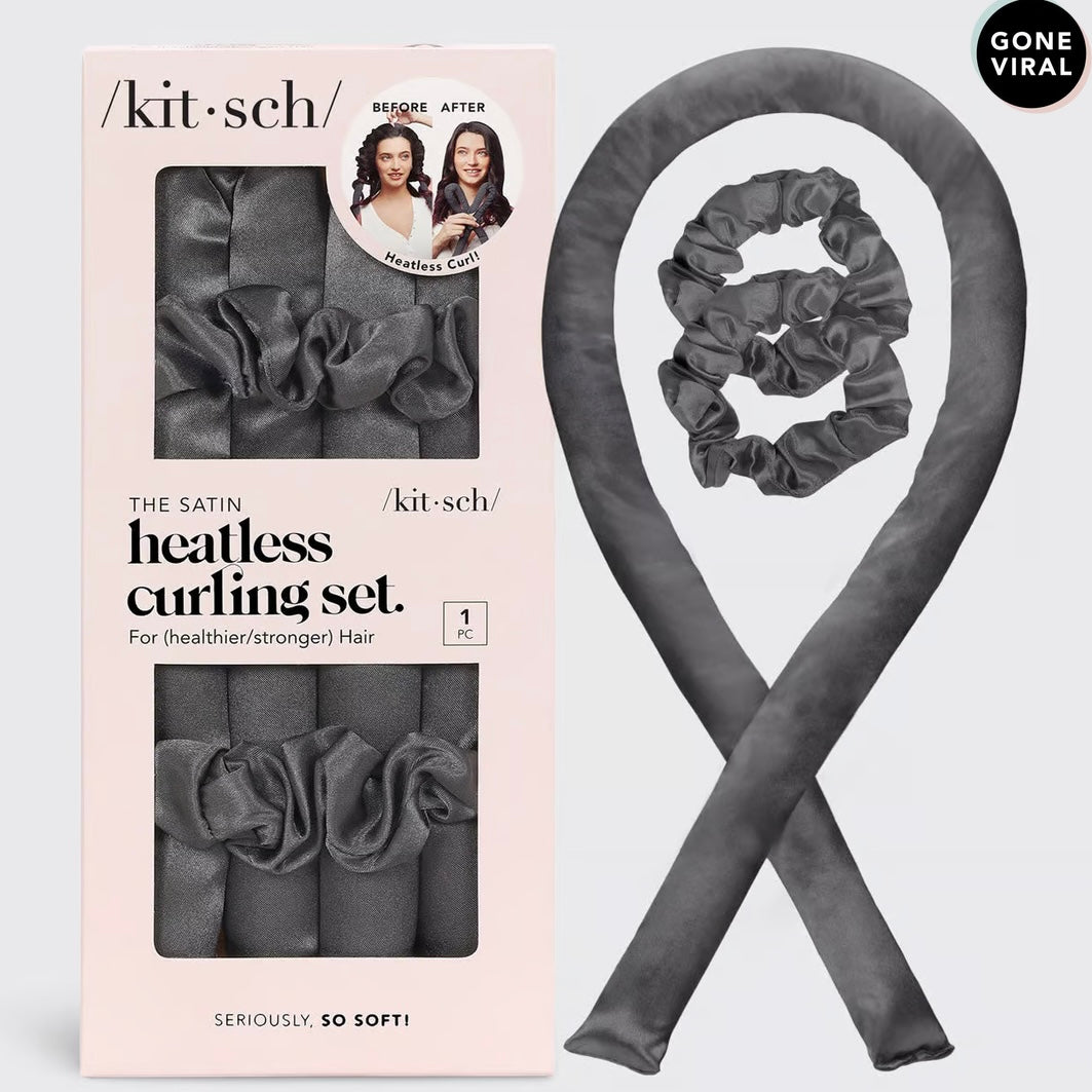 Put down the iron and create effortless waves or curls with this luxurious heatless curling set. A better alternative to heat styling for healthier hair over time. Set includes 1x heatless curling rod and 2x satin scrunchies to gently secure hair in place without crimping or denting.